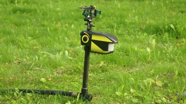 Ці водяні розбризкувачі підключені до проточній воді і влучно стріляють у всіх, що зробили замах на заборонену територію.