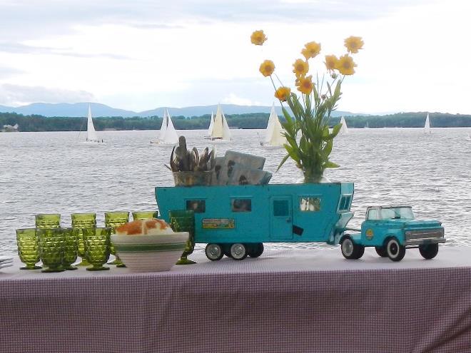 Для зберігання посуду, серветок, спецій або квітів не обов'язково купувати спеціальні пристосування. Просто візьміть стару іграшку, наприклад трейлер з причепом, і перетворите її в веселу композицію, функціональний тримач і відмінну тему для розмови з гостями. Тільки подбайте, щоб іграшка не скотилася з "місця стоянки".
