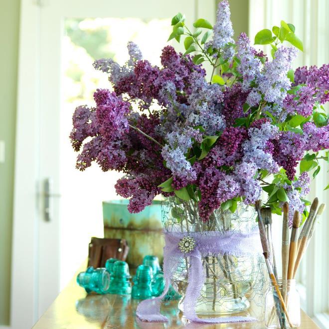 Декоративну вазу для наступної ідеї можна знайти в магазинах секонд-хенд. Зазвичай такі вази виготовляють з переробленого скла. Оберніть її в мелкоячеистую дротяну сітку, як в представленому нижче варіанті, і прикрасьте її барвистими стрічками з мішковини, які потрібно закріпити старовинної брошкою. Оригінальний мікс зі скла, тонкого металу, тканин і квіткового букета нікого не залишить байдужим.