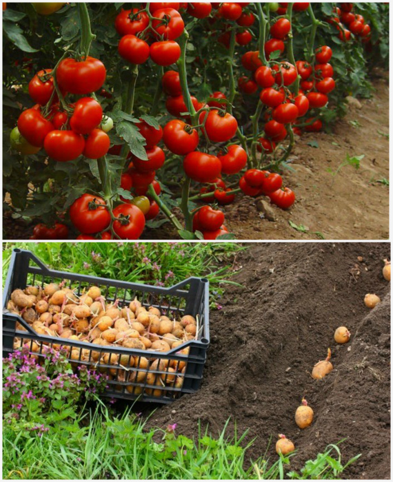 Помідори і картопля відносяться до сімейства пасльонових, що робить їх сусідство на грядці невдалим. Спорідненість цих культур означає, що вони схильні до однаковим хворобам і страждають від шкідників одного виду. Якщо ви посадите їх поруч – рослини швидше за все захворіють фітофторозом, та й будь-які інші хвороби будуть розноситися блискавично. Крім того, родинні культури швидко витягають з грунту необхідні їм мікроелементи, а значить в наступному сезоні їх висадка на тому ж місці позначиться на врожаї.