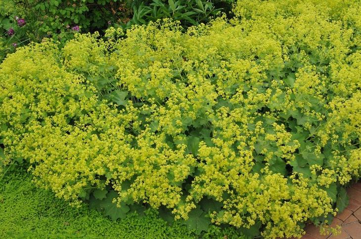 Манжета м'яка – ажурний лимонно-салатовий кущик заввишки близько півметра. Англомовні садівники звуть її "дамській накидкою".