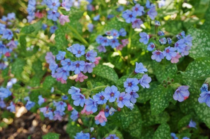 Цвіте медунка навесні схожими на дзвіночки квітками синіх, блакитних, рожевих, лілових відтінків. Ця рослина не боїться глинистих ґрунтів і напівтінистих ділянок.