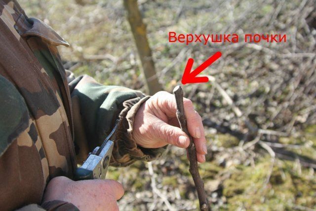 Найскладніше провести обрізку на нирку. Тут можна помилитися з висотою, кутом зрізу, зачепити кору і викликати утворення задирок. Правильну обрізку виконують від основи до верхівки втечі, ніж при цьому заводять з боку гілки, протилежної нирці. Основне лезо мають у своєму розпорядженні на 1-2 мм нижче основи нирки, а друге заводять на 1-2 мм вище. Кут обрізки невеликий – не більше 45 градусів.