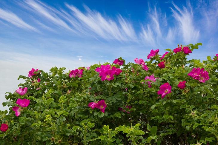 Цей чагарник теж знає і старий, і молодий. Дикі троянди розпускаються на кущі в кінці травня і виділяють приємний аромат. Рослина невибаглива і невимоглива до поливу, однак для пишного цвітіння йому потрібна достатня кількість світла.