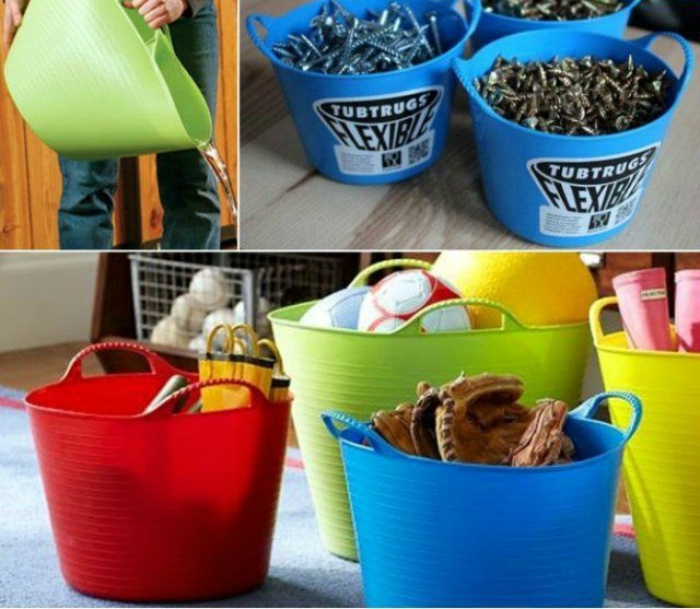 На дачній ділянці не буває непотрібної тари, адже потрібно постійно збирати фрукти і овочі, набирати воду для поливу або зберігати потрібні в господарстві дрібниці. Для всього перерахованого вище прекрасно підійдуть великі яскраві силіконові ємності. Їх не тільки можна використовувати для зберігання самих різних речей, але і при необхідності акуратно скласти і заховати.