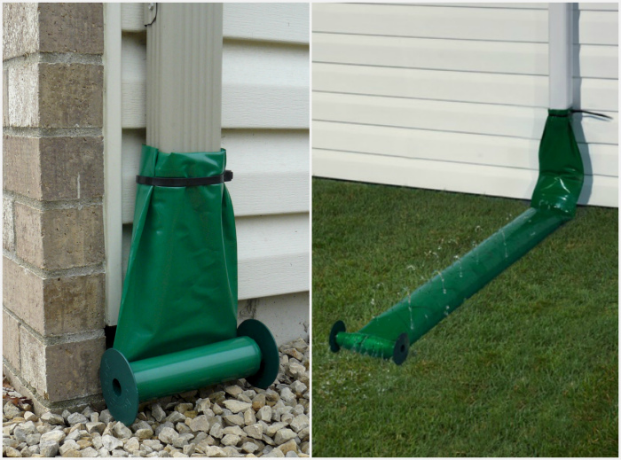 Уявіть собі, скільки води втрачається даремно в сезон дощів. Але ж стічні води замість того, щоб розмивати фундамент будинку, можуть бути використані для поливу рослин в саду. Для цього існує спеціальний рукав. Він кріпиться до нижньої частини водостічної труби. Наповнюючись водою, рукав буде збільшуватися в розмірах і розвертатися, віддаючи воду рослинам крізь безліч маленьких отворів.