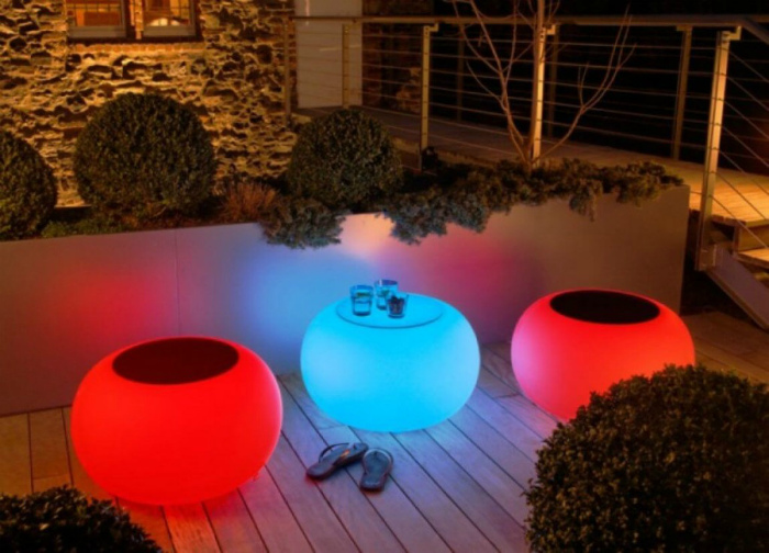 Округлі блоки, які світяться в темряві, прекрасно впишуться в екстер'єр дачного двору. Крім того, такі меблі дуже легка, що дозволяє переносити її з місця на місце.