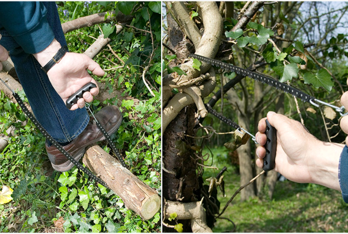 Ця компактна пила за розмірами трохи більше звичайного шнурка. Її не тільки можна всюди брати з собою, а й легко дістатися в важкодоступне місце, щоб спиляти потрібну гілку.
