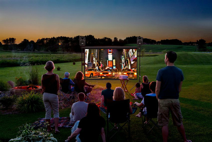 Великий екран і проектор під відкритим небом дозволять створити ідеальну атмосферу для затишних посиденьок.Домашній кінотеатр під відкритим небом стане улюбленим місцем для всієї родини.