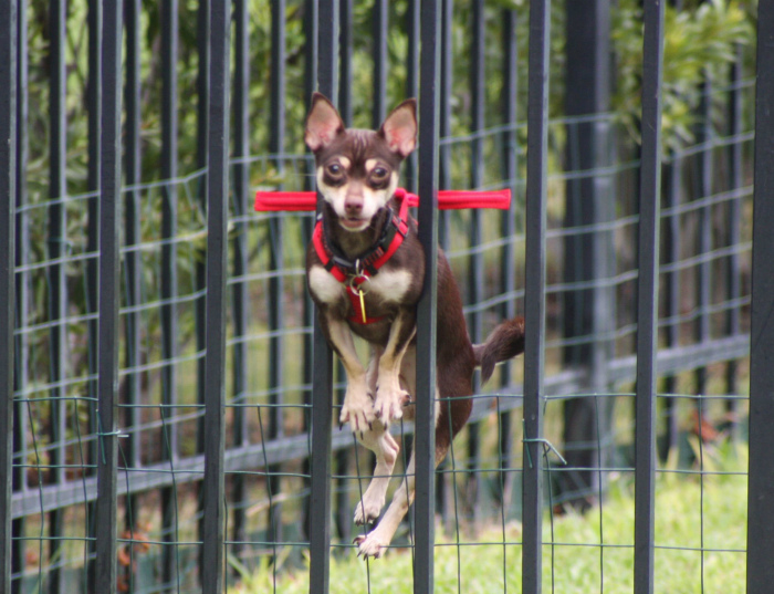 Якщо ви втомилися бояться, що ваш маленький песик прослизне крізь прути огорожі, то цей нашийник, то що треба. До його задньої частини прикріплена спеціальна паличка, яка не дасть вашому вихованцеві втекти.