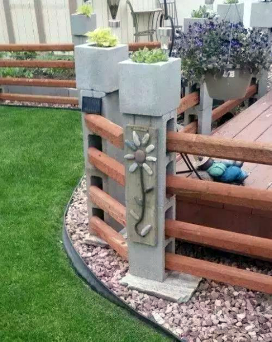Незвичайне огорожу, яке можна створити з шлакоблоків і дерев'яних дощок, дозволить правильно зонувати простір на дачній ділянці.