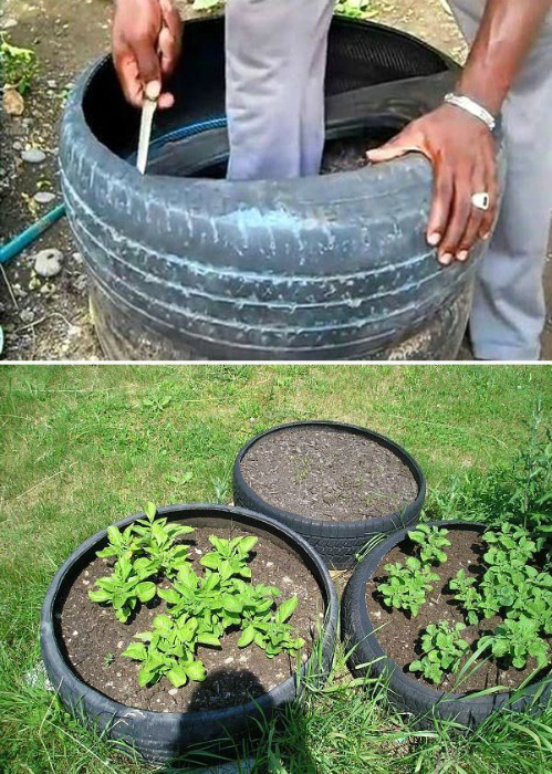 Підняті грядки з шин.