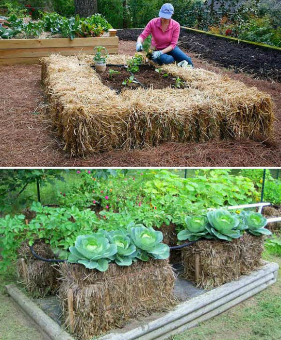 Варто відзначити, що сіно, яке на ролі бортиків, виконує функції ковдри, зігріваючи грунт, дозволяючи висаджувати розсаду раніше звичайного і прискорюючи процес дозрівання плодів.