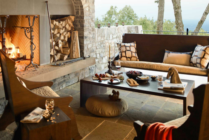 Чудова майданчик з масивним кам'яним каміном і елегантними меблями з темного дерева, стане постійним місцем для душевних посиденьок з друзями і близькими.