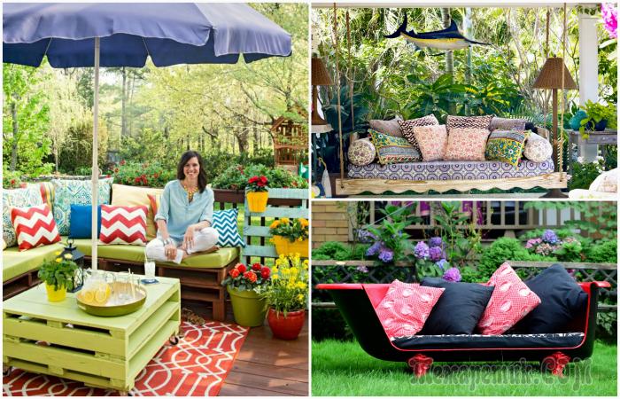 Стару ванну можна використовувати для створення ефектного диванчика, який прекрасно впишеться в ландшафт заднього двору і стане центральною деталлю стильного літнього патіо.
