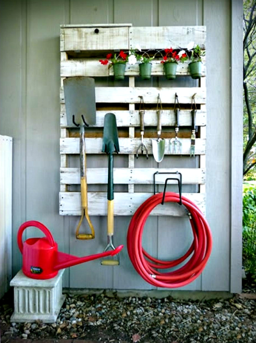 Непотрібний піддон можна перетворити в зручний стелаж для зберігання різного садового інвентарю.