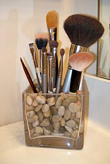 Вазочка, наповнена дрібними річковими камінцями, ідеально підійде для зберігання кистей.
