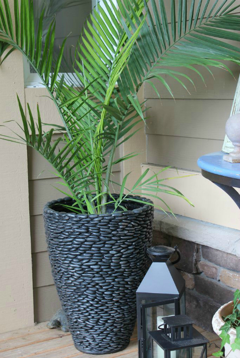 Річкову гальку можна використовувати в якості оздоблювального матеріалу для великих квіткових горщиків.