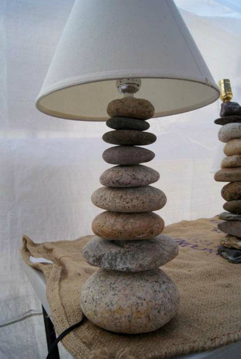 Вишукана настільна лампа з підставою з річкового каміння.