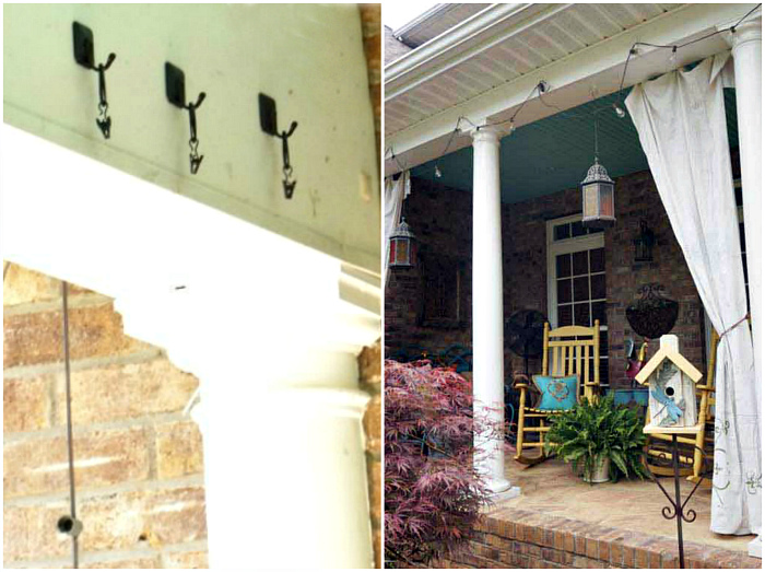 Гачки на липучках і, прикріплені до них, прищіпки «крокодил» дозволять легко прикрасити ганок фіранками, які допоможуть створити затишок і захистять територію від гарячих сонячних променів.