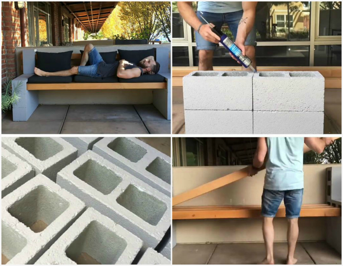 Затишний диванчик, який можна побудувати своїми руками з дерев'яних дощок і декількох шлакоблоків, стане чудовою прикрасою ганку, веранди або альтанки.