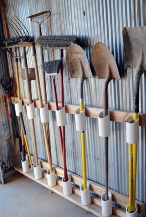 Навести порядок в гаражі або сараї допоможе нехитрий органайзер, який може зробити кожен бажаючий з невеликих шматочків ПВХ труб середнього діаметра і двох дощок.