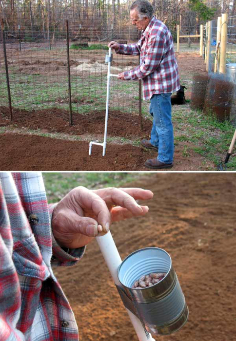 З тонких пластикових труб можна зробити зручний інструмент для посадки насіння в землю, який дозволить легко зробити лунку і помістити туди насіння не нагинаючись, що особливо актуально для пенсіонерів та людей, які страждають від болю в суглобах.