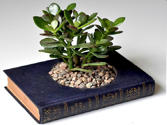 Навіть стару книгу можна перетворити в оригінальний кашпо для невеликих рослин.