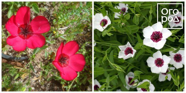 Селекціонери вивели садові сорти цього декоративного льону з суцвіттями білосніжною з червоним оком, червоної, рожевої, синьої, блакитний забарвлення.
