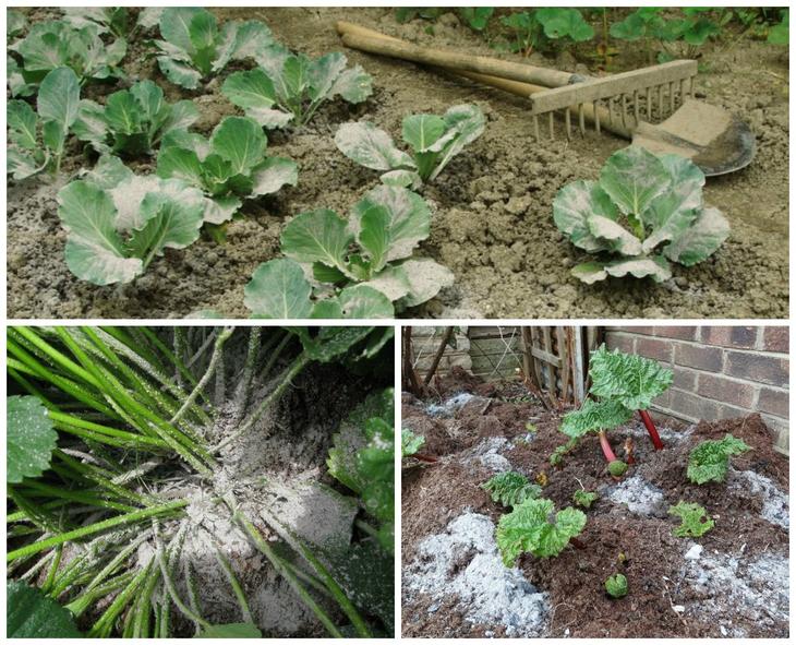 Золу можна змішувати з тютюновим пилом в рівних частках і запилювати такою сумішшю сходи капусти, а також цибулю і картоплю. На 1 кв.м йде 1 стакан суміші.