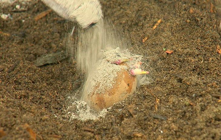 У разі, якщо ви хочете простимулювати золою зростання бульб і цибулин, пропорції залишаються ті ж, що і попередньому рецепті, а ось обсяг настою знадобиться більший. Таким чином, вам необхідно настояти 60 г золи в 3 л води.
