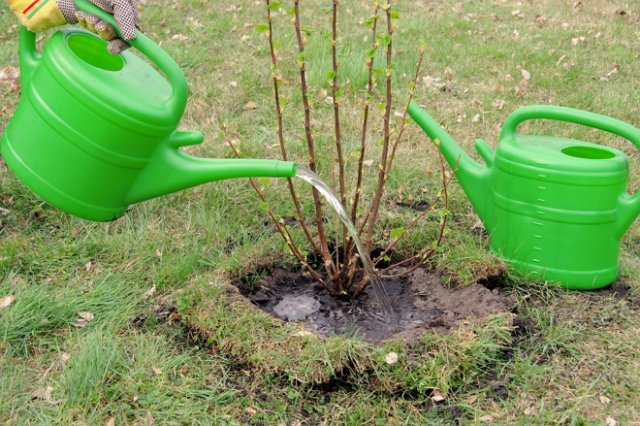 Перший раз рослину поливають під час активного росту зеленої маси і появи зав'язі. Зазвичай це відбувається в кінці травня – початку червня. Другий полив слід проводити в кінці червня – коли на кущі достигають ягоди.