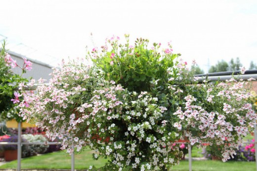 Оформлення квіткової композиції в біло-рожевих тонах. Використано: Сутера (бакопа), пеларгонія, діасція. . © Jessica
