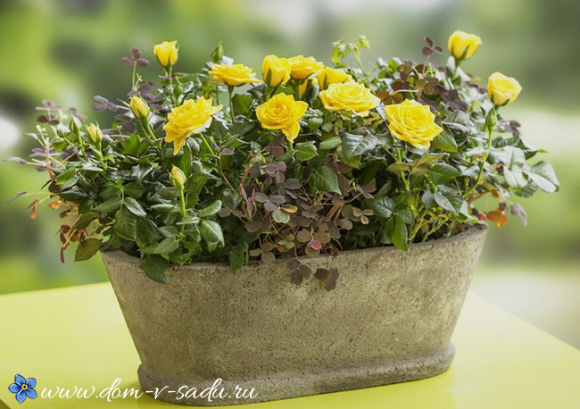 Грунт для посадки декоративного троянди складається з трьох видів грунту: перегній, дерено грунт, а також пісок. Грунт насипають шаром в приблизно п'ять сантиметрів. Далі це утрамбовується і на цю «подушку» садять корені рожевого куща. Після цього необхідно влити близько шістдесят мілілітрів води. Кущ ховають в кімнату, де тепло. Не слід поливати в найближчі шість днів. Трояндовий кущ можна повернути на колишнє місце тільки через тиждень. А через два – три тижні вносять підгодівлю, що складається з мінералів. І далі продовжують, доглядати за кімнатної трояндою, регулярно її поливаючи і вносячи підживлення, до тих пір, поки горщик знову не стане малий.