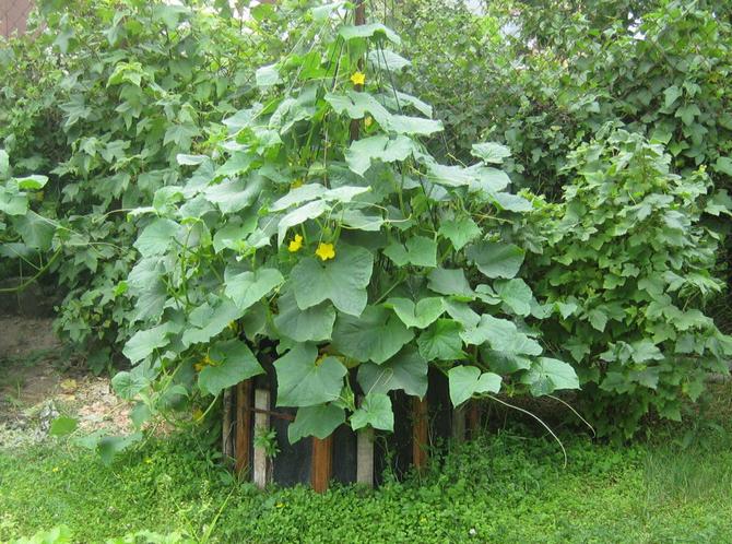 Такий огірковий курінь не тільки подарує хороший урожай, але стане прикрасою всього дачної ділянки.