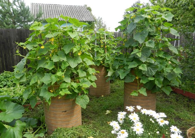 Які тільки матеріали не використовуються для оригінальних грядок. У хід ідуть усі підручні засоби, з яких можна зробити опори для цієї овочевої культури. Винахідливі городники придумали не один десяток цікавих і не традиційних методів розведення і вирощування огірків. Ось тільки їх мала частина.