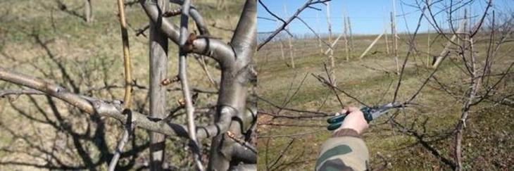Зростаючі вгору скелетні гілки потрібно обрізати на зовнішню нирку, спрямовану в бік.
