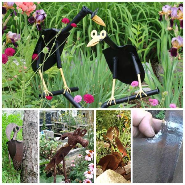 Для створення таких фігурок без зварювального апарату ніяк не обійтися. Старі інструменти можна шукати у себе, друзів, сусідів, а ось нові, але дешеві – на розпродажах в садових центрах. Тут головне – чітко уявляти собі, що і з яких предметів може вийти, намалювавши ескіз майбутнього виробу. Решта – справа техніки, тобто майстерності зварника.