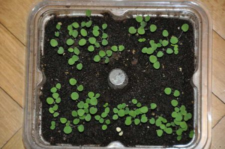 Отже, насіння стратифіковані, обрана глибока ємність, заповнена легким поживним грунтом, добре полито. Тепер поверхня ґрунту вирівнюємо і рівномірно розподіляємо насіння. Їх потрібно щільно притиснути до грунту за допомогою ложки і присипати зверху шаром землі товщиною в 3 мм. Зволожити краще за допомогою пульверизатора.
