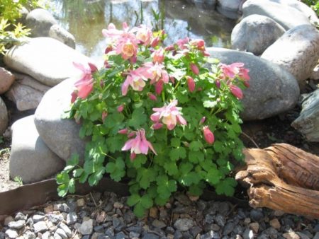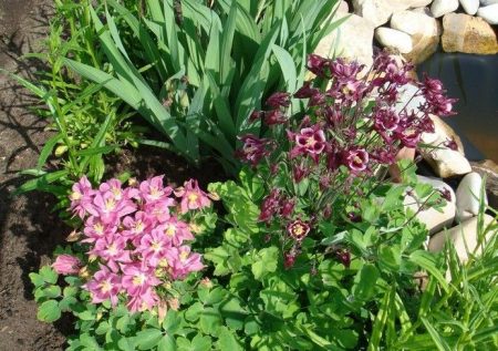 Неможливо уявити собі оформлення водойми без аквилегии. Тут вона красується серед папоротей, ірисів і хост.