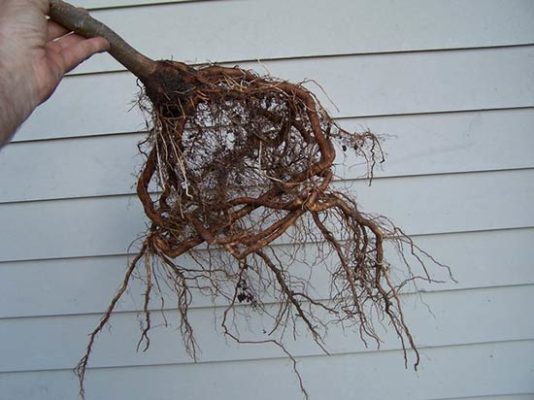 - Навесні дістають саджанець з укриття. Переконавшись в тому, що перезимував він благополучно, замочують коріння у воді з додаванням Корневином, Епін, Гетероауксин або іншого стимулятора коренеутворення.