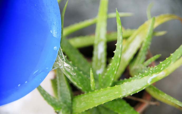 У літню пору поливати будь-який вид алое потрібно рясно, не рідше одного разу в тиждень. При цьому потрібно стежити, щоб грунтовий кому як слід просочився вологою. Важливо, щоб вода при цьому могла витікати через дренажні отвори. Обов'язкова умова – відсутність води в піддоні. Після поливу її потрібно зливати в обов'язковому порядку.