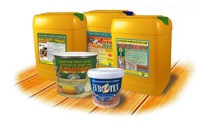 Найбільш популярні антисептики для обробки зрубів: Древотекс, Белинка, Акватекс, Текстурол, Неомид, Тіккуріла. Дерево легко запалюється, тому варто пам'ятати і про вогнезахисних засобах: Сенеж, Пірілакс, Фенілакс. Поліпшити відтінок допоможуть відбілюючі склади: Нортекс, Сагус, Сенеж-нео, КСД просочення.