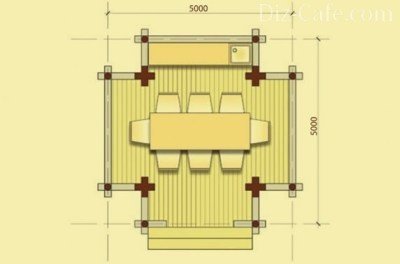 На схемі альтанки вказано розташування обіднього столу і міні-кухні
