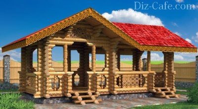Складаючи проект, слід подбати про дерев'яних прикрасах, які надають альтанок з колоди завершеного вигляду. Це може бути будь-який декор, пов'язаний з деревом – різьблені елементи, плетіння з лози, різьблення по бересті, фігурна дерев'яна мозаїка.