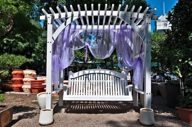 2. Пергола. Умовно кажучи, це просто лава під невеликим навісом. Лавка може бути підвішена, як гойдалки.