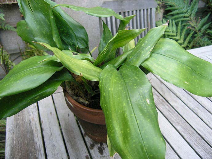 Аспидистра – житель субтропічних лісів Японії і південних провінцій Китаю. Ця рослина позбавлене стебла, і має гарні за формою м'ясисті вічнозелені листя, що ростуть прямо з грунту на витончених черешках пагонах по одному на кожному. Незважаючи на тропічне походження, аспидистра відноситься до розряду дуже невибагливих рослин, через що в народі її називають чавунним квіткою.