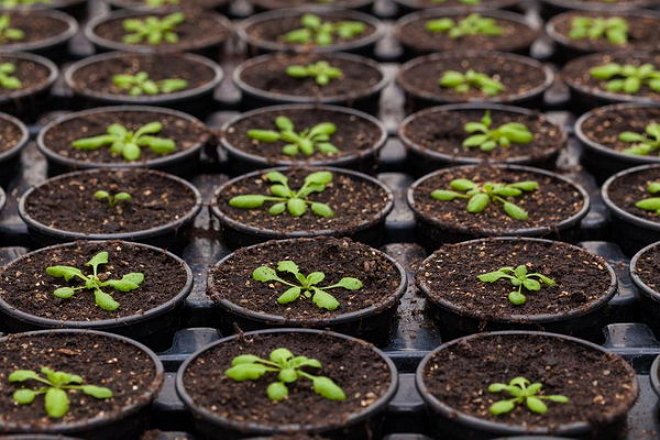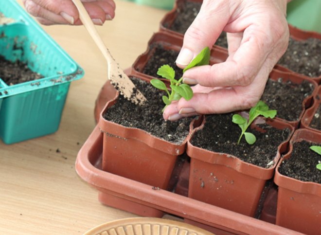 У фазі трьох справжніх листочків сіянці пікірують – розсаджують в окремі невеликі стаканчики або касети.
