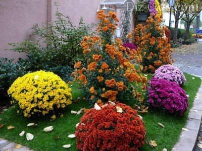 Яскравим прикрасою квітника в цей період виступають: кореопсіси, геленіум, очитки, айстри. Але справжніми королевами композицій в цей період стають хризантеми