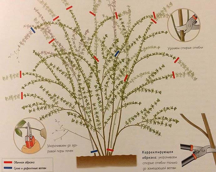 - дорослі кущі слід обрізати пару раз на рік, в першій декаді червня і в перших числах серпня;